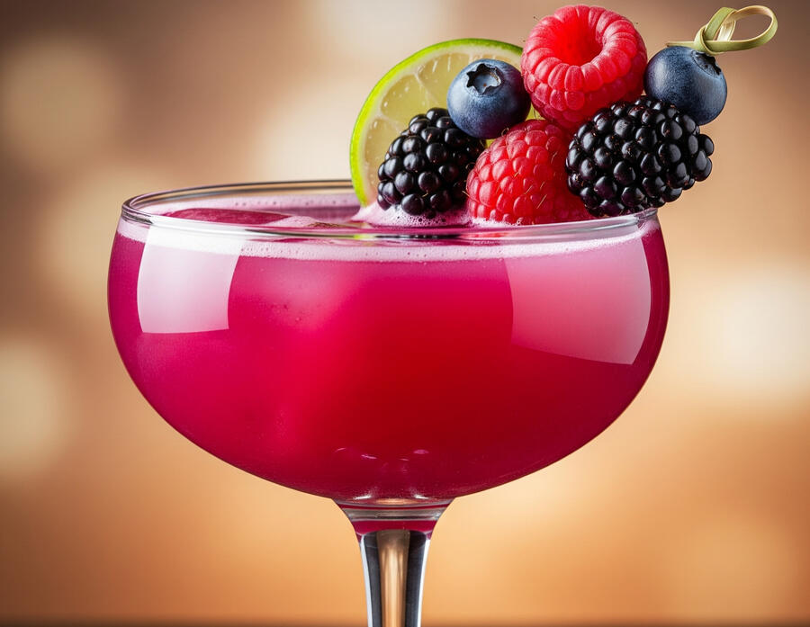 | The Very Berry Cosmo is a bold and vibrant cocktail that packs a punch with its intense berry flavors. This strong drink combines the tartness of cranberry juice with the sweetness of raspberry liqueur and the citrusy kick of lime juice. The addition of vodka adds a strong and smooth finish, making this cocktail perfect for those who like their drinks on the stronger side. Garnished with a few fresh berries, the Very Berry Cosmo is a refreshing and flavorful twist on the classic Cosmopolitan. |