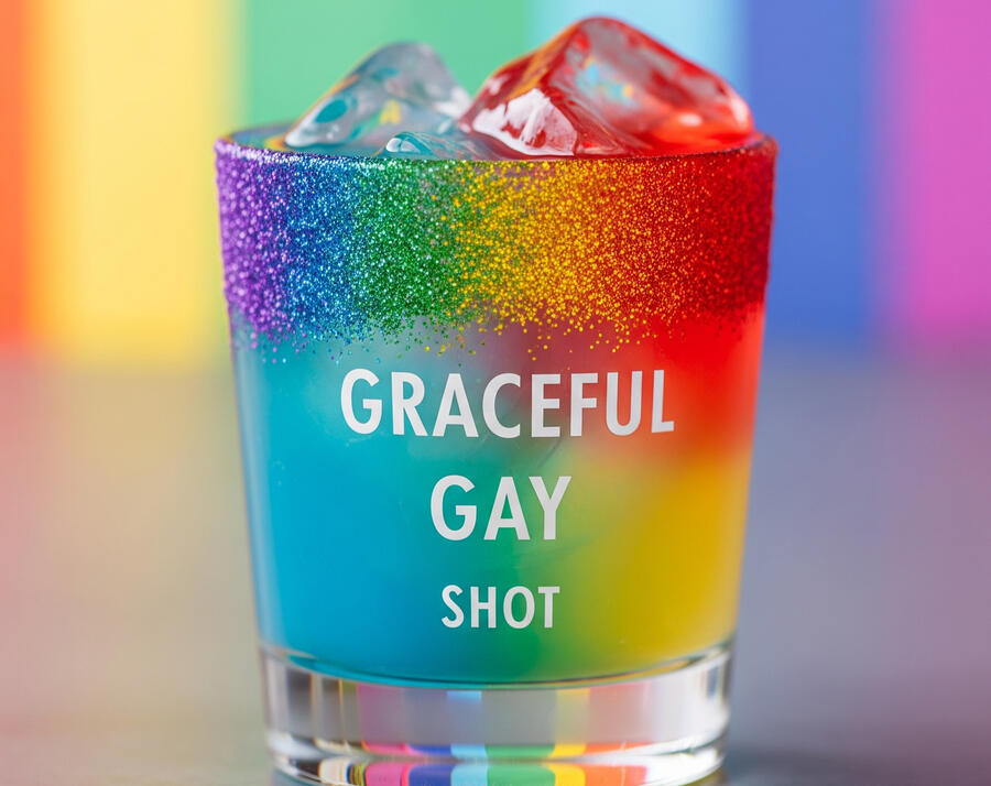 | The Graceful Gay Shot is a colorful and vibrant tribute to the LGBTQ+ community, celebrating love, diversity, and equality. This uplifting shot blends the sweetness of blue curaçao with the tanginess of lemon juice and the smoothness of vodka, creating a harmonious and flavorful concoction. Topped with a splash of grenadine for a pop of color and garnished with a rainbow of edible glitter, this shot is a symbol of pride and unity. Raise a glass of the Graceful Gay Shot and toast to love, acceptance, and the beauty of being true to yourself. |