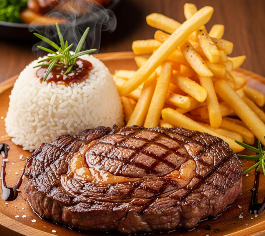 | The Meat Lover is a hearty and satisfying dish that is sure to please any carnivore. This indulgent meal features a juicy steak cooked to perfection, paired with crispy fries and fluffy rice. The combination of flavors and textures creates a delicious and filling dish that is perfect for a hearty meal. Whether you're a meat lover or just looking for a satisfying meal, the Meat Lover is sure to hit the spot. |
